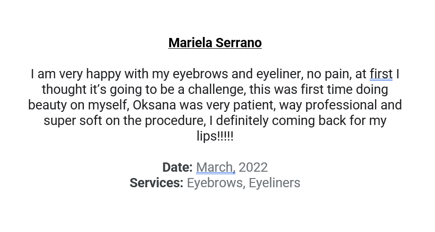 "¡¡¡Mis cejas quedaron taaaan bien!!! ¡¡¡Me siento hermosa al despertarme por primera vez en mucho tiempo!!! Tenía mucho miedo de hacer esto, nunca me había hecho un tatuaje, ¡pero quedó tan bien!"